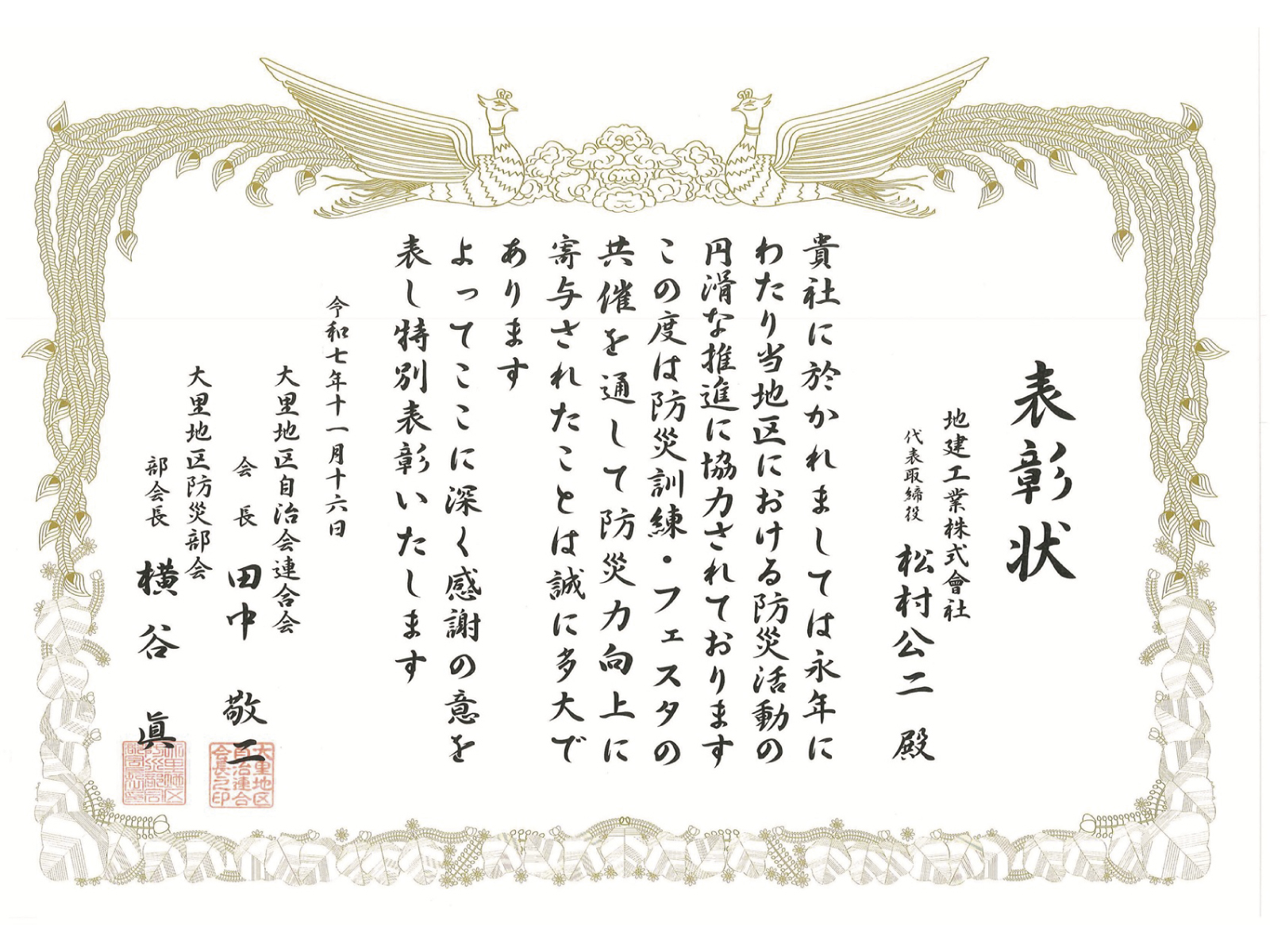 表彰状