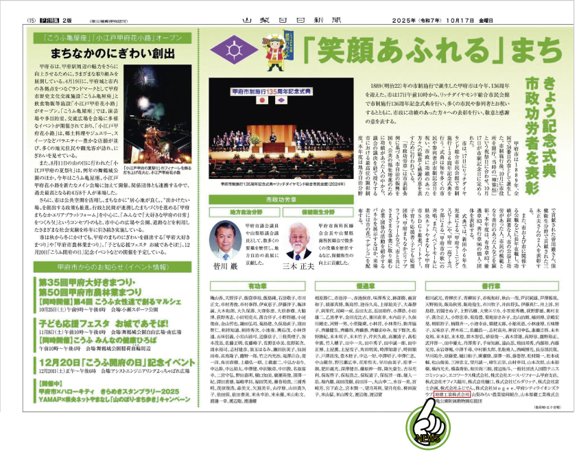 令和7年10月17日 山梨日日新聞15面