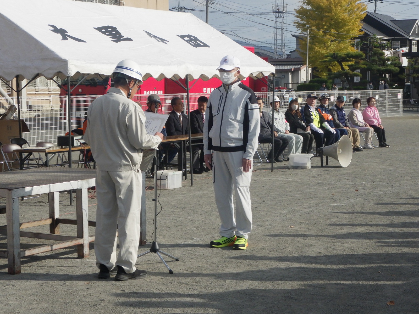 本年はフェスタ形式の防災訓練が執り行われ、弊社でも数ブース担当した。開会式では弊社での永年に亘る地域防災活動に対し表彰されました。