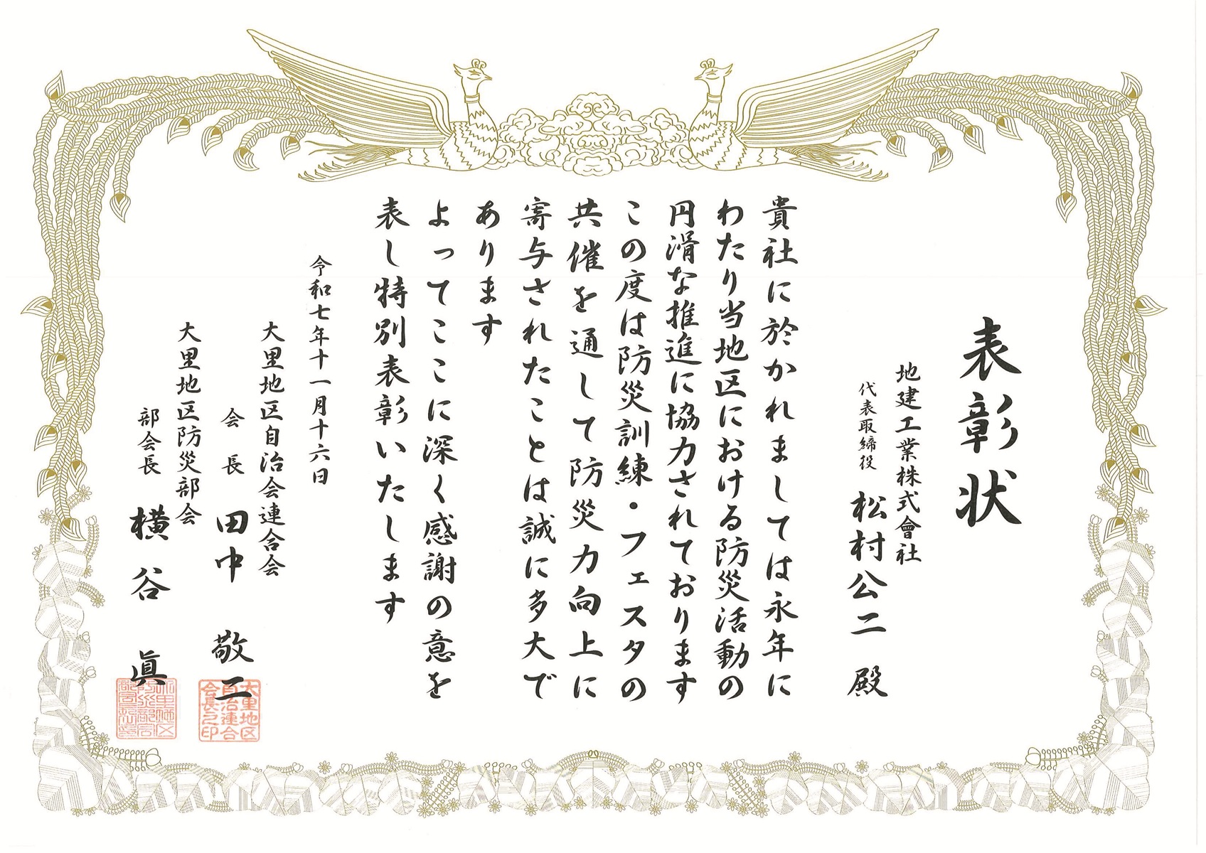 表彰状