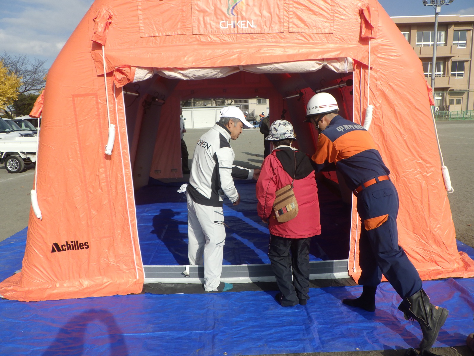 防災エアーテント展示・設置訓練