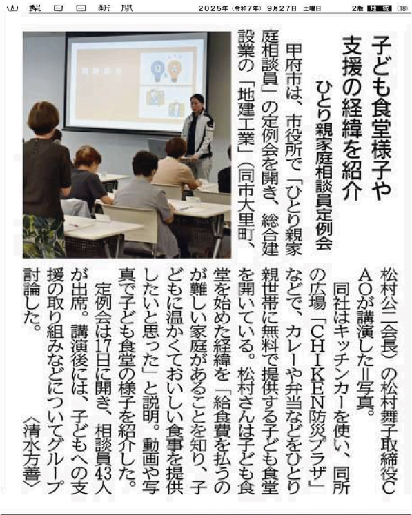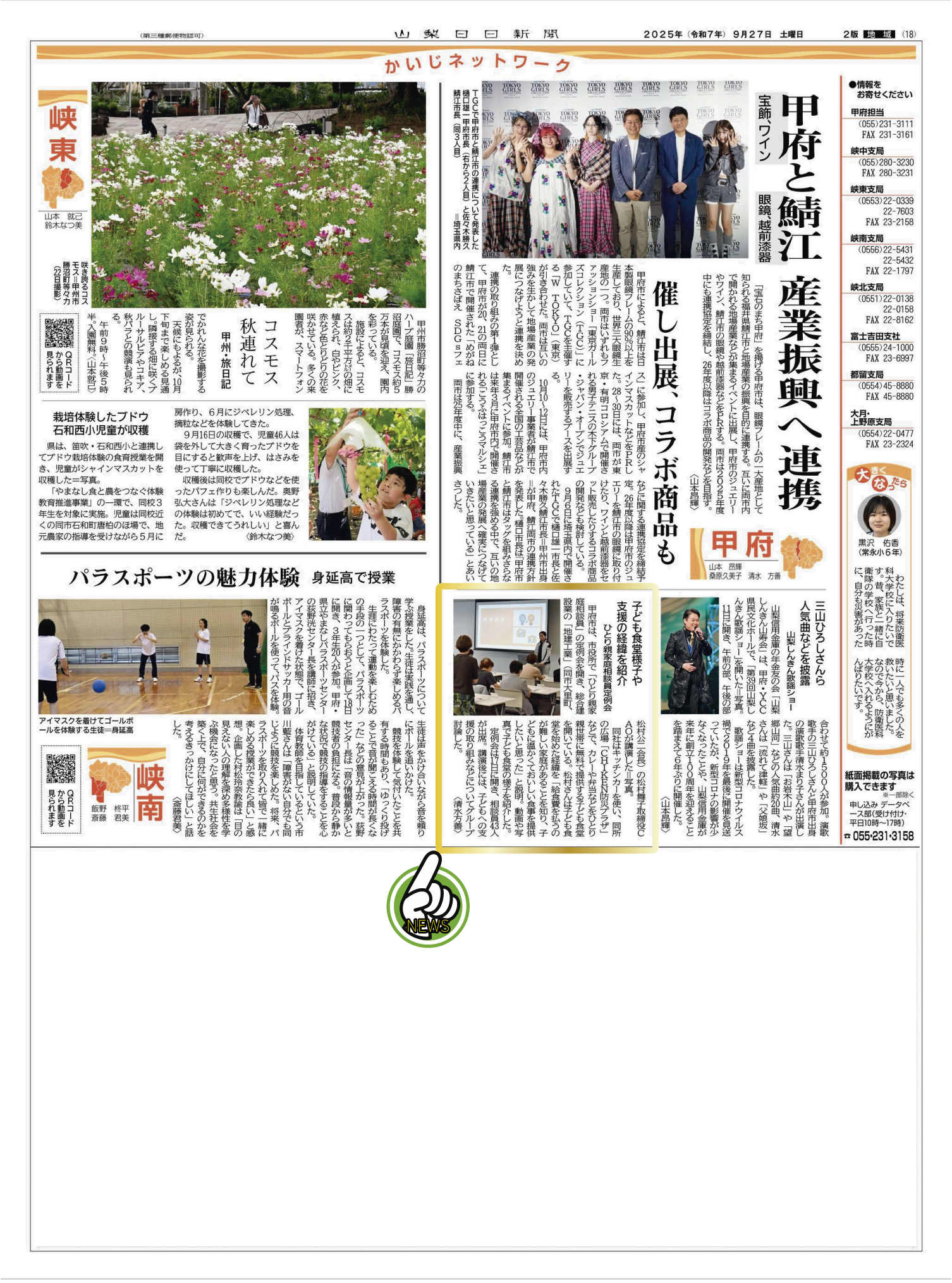 令和7年9月27日 山梨日日新聞18面