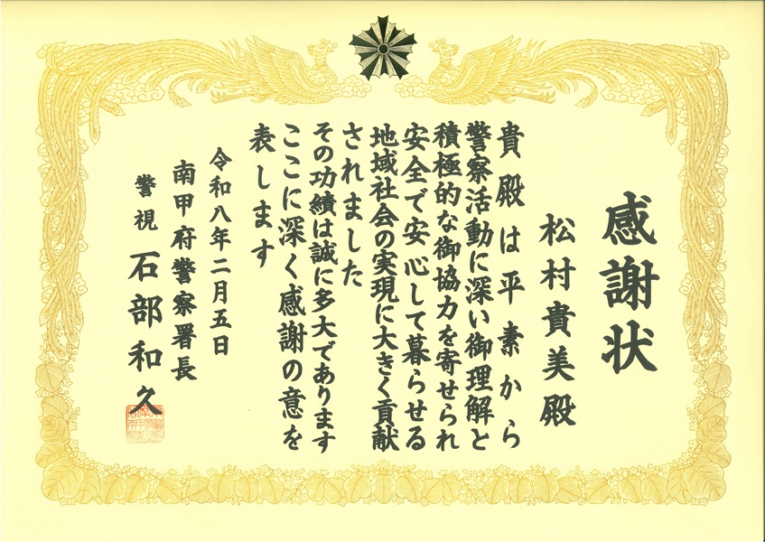 弊社では永年に亘り警察活動への協力を通して地域貢献に寄与しています。